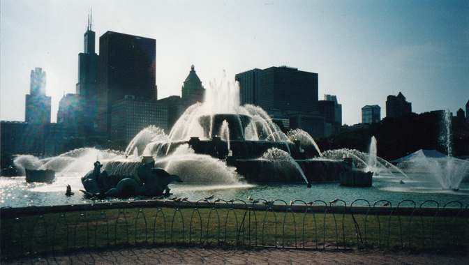 PrologueThis year we got a four day weekend at the Fourth of July. It seemed like an important year for taking part in July 4 activities. If we had been at home we probably would have stayed in, since the BostonEsplanade scene is such a mess if you don't live right in town. But we decided to take advantage of a good airfare and hotel deal and go to Chicago. We have always wanted to go there, and like Memphis, it has a really good blues scene, so we were sure we could have a lot of fun. 7/4/2002 - Arrival, July 4th at the Navy Pier, BluesCraig's Mom picked us up at 7:45 a.m. and brought us to the airport. The airport was really dead, and it took us no time at all to check in and go through security. We ate breakfast at Burger King and then headed to the gate to wait. Our American Airlines flight departed at 10:02. We really like American these days, as they really do have more legroom in coach than the other airlines.We arrived in Chicago at 11:15 Central Daylight Time. We took the Airport Express shuttle to our hotel. We bought round-trip tickets so that they would bring us back to the airport when we were ready to depart. The drive to the hotel was about 30 minutes. The highway system was really nice, as there were express lanes that led right to downtown, so that you didn't need to contend with lots of cars entering and exiting. Our hotel was right on the Magnificent Mile. It was the Omni Chicago Hotel . We ended up staying there because we had gotten a very good deal on the room. Our room was 714. It didn't have a very impressive view, but that was just fine with us. The room itself was great! It had a sitting room with Web TV, a fax machine, phone, two wing chairs, an ottoman, a desk and chair, a wet bar, minibar, and coffeemaker. There were French doors that opened into the bedroom, which contained a kingsized bed, three oversized pillows, a CD player/clock, a TV, and a phone. The bathroom was very spacious and contained a hairdryer. There was also an ironing board, iron, and umbrella in the closet. The layout of the room was very nice, as the rooms formed a circle and we wouldn't get in one another's way. We relaxed and unpacked for about an hour and a half, and then headed out. The weather was about 90 degrees and sunny, but it felt good, as it had been 97 and very humid back home. We walked down Michigan Avenue. There were tons of tourists on the sidewalks, with shops and resturants lining both sides of the street. On the same block as our hotel we saw Garrett's Popcorn Shop. The place always had a huge line snaking through the small store, and as soon as they could produce caramel popcorn, it was scooped into wax paper baggies and given to the hungry customers. We didn't brave the line on this trip to Chicago, but it's a must for the next time we're there! We passed the Wrigley Building, which has a beautiful clock tower and some exquisite stonework. Next to it is the Chicago Sun Times building (Roger Ebert's place of employment). It's just a standard generic office building. Across the street is the Chicago Tribune building (where Gene Siskel used to work). It was funny, because I never imagined Siskel and Ebert as working literally across the street from one another. The Tribune building is gorgeous, with lots of adornments. Chicago on the whole has a wealth of beautiful architecture (and this is without even seeing the Frank Lloyd Wright buildings there). We stopped in at the Rand McNally Travel Store (couldn't resist, with our travel addiction) and bought a map of the city. We browsed around in there and saw a really neat book of photos called Earth from Above. This book contains 365 photos of various countries taken by Yann Arthus-Betrand. The photos were just amazing, and we were captivated by the book. A guy working in the store told us that about a hundred of these photos were currently on display as an outdoor exhibit in one of Chicago's parks. We made a mental note to try keep an eye out for this exhibit during our wanderings. We started to notice that revolving doors are very popular in Chicago. Our hotel had them, and so did pretty much every store. We wandered around to try to find some lunch. We went to Carson's, The Place for Ribs, which we had read about on the web. It is very unassuming from the outside, and has a sign advertising its "sophisticated carry-out packaging." We went inside and found that the inside was a little more upscale than some of the other rib places we have been to (Redbone's in Somerville and the Rendezvous in Memphis). But it was really nice. The service was fantastic. Craig, always eager to try a local brew, got the Two Brothers Dog Days Lager, and I just got a soda. They brought us a basket of various hot fresh bread and rolls. Next we got our cole slaw, which is served as an appetizer. It was the kind of cole slaw we really like, all green cabbage, and very juicy. Very delicious, and generous portions. Craig got a full rack of baby back ribs. I got a half rack of baby backs and a pork chop. This was served with a double baked potato and a decanter of warm barbecue sauce (even though there was already a liberal amount on the meat). Everything was delicious. The pork chop was about an inch thick and was so tender. And the ribs were wonderful. The barbecue sauce was kind of tangy and smoky. We wore Carson's plastic bibs for the messy endeavor (yet they were squeaky clean once we finished eating, so we were proud of ourselves- especially me!) and were given hot moist towelettes to clean up afterwards. I had a little piece of pork chop left over so we decided to utilize thir "sophisticated carry-out packaging" to take it back to the room. On the way back to the hotel we walked down the street to find the Blue Chicago club. Some good blues was scheduled there over the weekend, and we wanted to see if we could find it. Blue Chicago actually consists of two clubs which are a couple bocks apart, both on North Clark ("Blue Chicago on Clark" is at