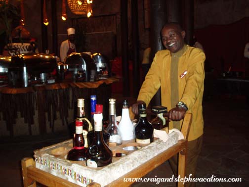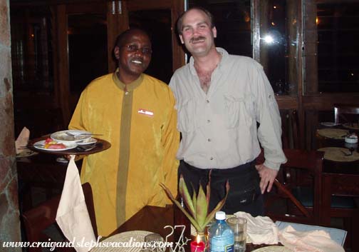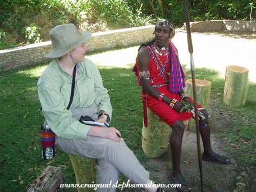 We woke up at 4:30 am because this morning would be our hot air balloon safari. Craig realized that we had wanted Patrick and James to drive some of the items we had bought back to Nairobi but we wouldn't be seeing them again today. The SafariLink flight we would be on tomorrow had a weight limit of 32 pounds per person, and we didn't want to exceed it. We packed Craig's small stuffsack with the merchandise we had bought so far, and left it in reception area for Patrick to take along with him. We were in the lobby by 5. Peter, one of the Maasai who had served us drinks the night before at dinner, was already up and working, serving coffee, tea, and "Nice" cookies with his omni-present smile. The cookies (biscuits) here have different names. Not just on the packaging but printed on every cookie. This always made us laugh when there was a platter full of them. You could always tell exactly what you're dealing with when faced with a pile of cookies. Some were plain, some were shortbread, but "nice" cookies had a sprinkling of sugar over the top of them. Craig grabbed a few of these as he couldn't resist a little extra sugar at five in the morning. I didn't eat or drink anything because I wasn't sure how my stomach would hold up through the balloon ride.