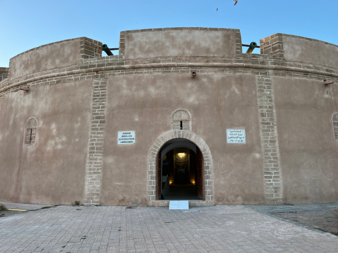 Thursday 2/29/2024 - Argan Oil Cooperative, Winery, EssaouiraWe woke up at 7:30 a.m. and had breakfast in the Pixel room at 8:30. We had pastries, msemen, omelettes (Craig had veggie and I had cheese), bread, orange juice, yogurt, fresh fruit, and coffee. The dining room was busier at this time and we were seated next to two American couples. We taught them the trick to seeing the Pixel room's decor through their phone camera, and chatted with them about Morocco. Their trip had begun in Portugal and Spain. Today they would be doing the hike in the High Atlas Mountains that we had done yesterday, so we spoke to them a bit about that as they wanted to know what to expect.We had invited Jamal to show up at 9:45 for our 10 o'clock departure, as we wanted to show him the Pixel room and the Library. The decor is just so cool! We then showed him our suite (#3), and the secret door in the lobby as we checked out. Before leaving town, we needed to visit an ATM, and we needed to buy stamps to send two postcards. One was to a friend in Finland who had requested a postcard from the Sahara, and the other was for a project that a teacher in East Greenland was conducting. She had asked for people to send postcards to her 4th graders as a way to kickstart their interest in geography. The post office was not open yet, but Jamal found someone who sold us two postcard stamps, and I put the postcards into the mailbox. (By 3/23, the East Greenland card had reached its destination!) We went to the ATM, and then were ready to leave Marrakech for Essaouira. On the way south to Essaouira, we stopped at Khmissa Argan, an Amazigh women’s argan oil cooperative. We arrived there at around 12:20 p.m. Argan oil is higly prized for its use in food products and cosmetics. The argan tree is indigenous to Morocco and Algeria. There was a herd of goats in the parking lot. Goats are famous for climbing argan trees to eat the seeds. I didn't stop to take a photo of the goats as we were being ushered into the cooperative. I figured that I would get a photo on our way out. The women who work at the cooperative were singing and ululating as they hit the argan seeds with stones to crack and remove the shell. They were obviously enjoying themselves. With much laughter, they invited us to sit down with them as the argan processing was explained to us. Once they remove the shell from the argan seed, the seed is either roasted (if being used for a food product) or used it as-is (for cosmetics). I got to add seeds to a stone hand-mill (r'ha, in Arabic) and turn the top stone via a wooden handle. A thick, oily brown liquid is extracted from the seeds, and is collected in grooves in the lower stone. We were served tea and given some culinary grade argan oil to taste. We dipped bread into the plain oil, and also tasted amlu, a thick brown paste made by grinding roasted almonds and argan oil together and adding honey. It had a consistency similar to a nut butter. They then demonstrated the cosmetic products that they sell, including hair serums, soaps, lip balms, face masks, etc. We purchased gardenia argan oil hair serum, two small containers of coconut argan oil lip balm, and crystallized eucalyptus for congestion. You add it to boiling water and it becomes like Vicks Vaporub on steroids. It was not cheap ($55 for all), but that is due to the fact that extracting argan oil is not only labor intensive, but it takes 88 pounds of argan fruit to provide just one liter of oil. We were happy to contribute to this women's cooperative which employs Amazigh women in such a grass roots way. We spent half an hour at the argan oil cooperative. When it was time to get back in the car, the goats were no longer there, having been brought to pasture somewhere. There was nothing else on today's itinerary once we reached Essaouira, and Jamal offered us the opportunity to stop at a winery for lunch and a wine tasting on the way. Even though we're not big wine people, this sounded good to us. We had enjoyed the Moroccan wine that we had sampled on our motorcycle sidecar tour. Half an hour later, we arrived at Le Val d'Argan winery. This is Morocco's most southern winery (most wine is produced in the north near Meknes). We took a short tour of the area where fermentation, aging, and bottling occur. Fermentation lasts longer for red wines. The vineyard produces 300,000 bottles per year, 90% of which are consumed locally in Morocco. The remaining 10% are exported to the U.S. and France. This was surprising to us, as Morocco's population of Muslims largely don't drink. After the tour, we were led to a beautiful outdoor patio surrounding a swimming pool. The pool was surrounded by whimsically painted wine barrels. We were shown to a table in the shade. For just $35 per person, we were served a 3-course lunch and a serve-yourself all-you-can-drink wine tasting of 6 different types of wine. The wine bottles were housed in half of a wine barrel laying on its side. The staff showed us the 6 types of wine and the recommended order for drinking them with the meal. Then we were on our own. We were a little bit shy at first; coming from Massachusetts where the liquor laws are very strict, this all seemed a bit overwhelming. We had huge wine glasses and could just serve ourselves as much of six different wines as we wanted? Wow! I took note of the order we were supposed to follow, and poured us our first glasses of Perle Grise de Mogador. We were served bread with olive oil produced from trees on the property. The appetizer course was an elaborate salad: beans, carrots, beets, eggplant, tomatoes, rice, cucumber, and zucchini. The next wine was Perle Rose de Mogador, followed by Perle Blanche de Mogador. The next course was beef kafta and chicken skewers. This was paired with Perle Noire de Mogador and Les Fleurs du Val. Chocolate pie for dessert was paired with the dessert wine Perle Orange de Mogador. The food and the wine were delicious, and we enjoyed sitting in t