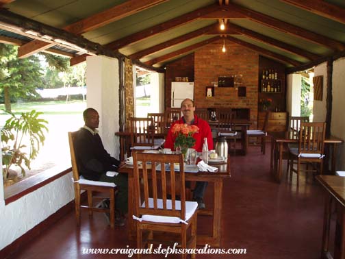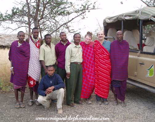We woke up at 6:00 am and got packed up. Craig was in the bathroom when I heard scurrying and then the pitter patter of little feet on the roof of the tent. Mouse #10 was coming to say goodbye! At 7:15 we headed up to breakfast. It was a buffet: bananas, watermelon, honeydew melon, bacon, sausage, fried eggs, beans, bread, and mango juice. Sylvestry gave us the contact info for his foundation. We went down to the Land Rover and got a picture with the staff. We hugged Sylvestery and said "Until next time." We waved goodbye as Michael drove us out of camp.
