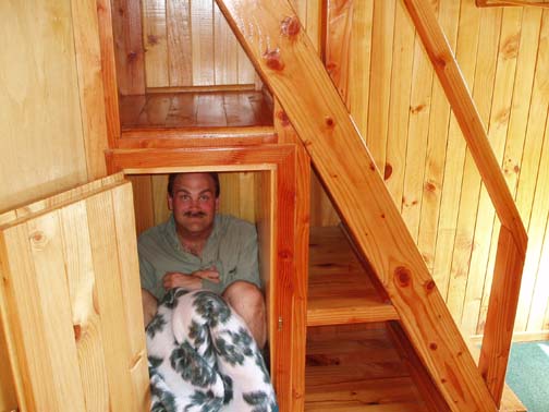 We woke up at 6:30 am, took cool showers once again, and got ready for the day. We packed our small day packs with everything we would need for the next few days, and we would leave everything else in storage at the Guest House. We weren't exactly sure how the day would go so we didn't want to bring too much stuff with us. We didn't want to run the risk of getting everything wet on our kayak trip. Since the kayak trip was a one way event, we assumed that we would be carrying everything for the next few days with us in the boat, and that we should pack very light. We wandered out of the room at around 8:00 for breakfast - granola, yogurt, bread, ham, cheese, and coffee. They kept asking if we wanted more bread and coffee but we were sort of waiting to see what the main course was going to be today. Would it be more of that fantastic French toast? Vicki was nowhere to be found this morning, but Anna, Isabel, and Sylvia were all very attentive. By now, other guests came to breakfast and the same thing was happening to them. We realized that it seemed as though we weren't going to get anything else so we enjoyed more bread and yogurt and tried to fill up as we would be working hard today. Perhaps there was no main course at breakfast as they were all still reeling from last night's festivities. Either way, we felt a bit disappointed that we would be starting our day this way and we already wondered what lunch might be like. Since we would be carrying everything with us it would likely just be small sandwiches. After we finished breakfast, we put almost everything we had into our large packs and carried them up to the second floor of the Guest House. The wooden stairwell was full of framed photographs. There were many different photos of Vicki and her family but we didn't have much time to really look at them carefully. At the top of the staircase, there was a very large central room with bedrooms around the perimeter. It really is a beautiful home with lovely wood trim giving it lots of character. While up there, We noticed that there was another staircase heading up to a small additional floor overlooking this whole floor. There were many oddly shaped windows and nooks as well. Although the upper area was blocked off, it was quite an interesting architectural element. We stowed our bags in a small dark closet off the main room and headed back downstairs.