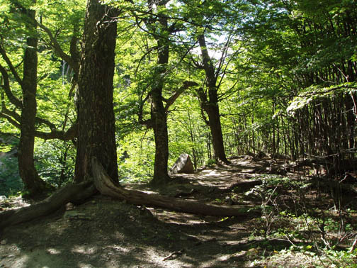 As we turned into the woods, Cristian met up with a friend and was chatting away. We decided to go ahead knowing that Cristian would catch up easily, regardless of the distance we would cover. Continuing down the trail, through the woods, we quickly recognized all the different sights we saw just a few hours ago. It's funny how you really feel like the hike goes by so much faster once you have been over the ground previously. We saw all the beautiful flowers we had passed, the section of large trees that were knocked over, all the roots sticking up from the ground trying to catch unsuspecting hikers. It all seemed to go by so quickly. Sure enough, Cristian came running up the trail behind us saying that we didn't make it that far ahead and thanked us for letting him chat with his friend. We had to laugh as we were thinking we had actually covered a pretty good distance. When we got to the short steep climb where a rope was installed for assistance, Cristian got a bit nervous with me as apparently I was using the rope a little more than I should. He pointed out how you should never trust a pre-existing rope and only use it to help, always thinking it could let go at any moment, and to make sure you never fully are relying on it.