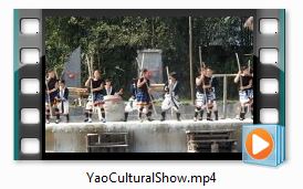 Welcoming committee at the Yao cultural village Yao man with a musket which he fired to welcome us Yao grainaries Yao cultural show Xiao Qi Kong Bridge Xiao Qi Kong Scenic Area Xiao Qi Kong Scenic Area Xiao Qi Kong Scenic Area Crouching Dragon Falls Fancy dinner at Deng To Hotel Kids in the square
