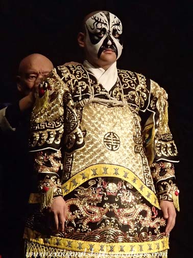 Monday 4/20/15 - Lama Temple, Beihai Park, Beijing Shi Cha Hai Sports School, Silk Factory, Beijing OperaWe woke up at 6:55 a.m. after a very comfortable and restful sleep. We took showers and heard music and morning announcements through the open bathroom window. At 8 o'clock we went down for breakfast. We had peach juice, orange juice, coffee, pork dumplings, beef with peppercorn on the edges, watermelon, strawberries, omelets, bacon, sausage, banana bread, "cake with eggs, flour, and milk" (the yellow sponge cake I loved so much last time).We stopped at the room to get our day packs and met Karen and Mr. Chou at 9 o'clock. The weather was gorgeous: blue skies and sunny. Karen immediately said that we had brought the good weather with us again, as she remembered how lucky we had been in the weather department last time. We enjoyed chatting with Karen on the ride, and we arrived at Yonghegong Lama Temple at 9:30. It was built in 1694 as the residence of Prince Yong of the Qing Dynasty. In 1744, it was converted into a Tibetan Buddhist temple. The Lama Temple opens to the public at 9 o'clock each day. Before that, the monks are studying and praying, as it is an active temple. We walked through a very pretty tree-lined garden area to get to the temples. It reminded us of the grounds of the Temple of Heaven. There were a lot of birds here as well. It was very peaceful despite being in the midst of the city. We arrived at a plaza where Buddhists were praying and lighting incense in front of the temple. Different ethbicities pray noticeably differently: the Han Chinese kneel, while those of Tibetan heritage prostrate themselves on their bellies. They light 3 sticks of incense and bow 3 times from a kneeling or standing position. There were monks in their crimson and gold robes. One was manipulating prayer beads in one hand and a smartphone in the other. It was the perfect juxtaposition of old and new. Karen explained that this complex was originally built for the prince, and had halls of mathematics, pharmacy, prayer, etc. A dominant color is green because that was the princely color. But it was then turned into a Buddhist temple complex. We went into the first temple. No photos were allowed inside the temple buildings themselves, much like in Bhutan. In fact, the temples had elaborate designs painted on the ceilings and beams, a characteristic that they share with their Bhutanese counterparts. The buildings are restored and fixed up on a regular basis, so everything was very fresh and new-looking despite being hundreds of years old. As we passed through one temple, we found ourselves in another plaza in front of the next temple, and so on. There were similar to the temples we had seen in Bhutan. One temple featured a statue of a laughing Buddha and his guards (one for each of the 4 cardinal directions). Each guard had a weapon: sword, snake, scepter, and musical instrument. The instrument was a weapon because when he played it, it gave devils a headache. We thought that was quite clever. The statue of the guard with the scepter was stomping a devil underfoot. Another temple contained three Buddha statues: Chinese, Eastern, and Western, symbolizing the ubiquity of Buddhism. Another contained statues of past, present, and future Buddhas, symbolizing the timelessness of Buddhism. One temple had long benches with Oriental rugs on them and long tables with many reading lamps for studying. The texts were kept in silk pouches (once againm similat to Bhutanese temples). This temple also contained a statue depicting on a real lama. It was carved from wood and had a gilded face. There were 300-year-old paintings on silk featuring Buddhist designs similar to those which we had bought in Bhutan and which now hang in our bedroom. Then we went into the final and most amazing pavilion. The most awe-inspiring sight here was an 18-meter-tall statue of Maitreya carved from a single piece of white sandalwood. In total it is 26 meters tall, as there are an additional 8 meters buried underground for stability. I entered the temple and saw the feet of a statue in front of me. The low ceiling at the entrance obscured my view of the full statue. I emerged from under the low ceiling and found myself looking up in awe at a larger than life statue. I called Craig over to see and his reaction didn't disappoint. His jaw fell open. Karen got a big kick out of our reactions. It was absolutely massive and impressive. It is even in the Guinness Book of World Records! Karen explained that the tree was cut down in Tibet and it took 3 years to transport it all the way to Beijing in the mid 18th century. Then it took another 3 years to carve it in 1750. It was awe-inspiring. Photos were not allowed, and although many other people took them anyway, it is important for us to respect the rules. Perhaps not having a photographic image of something so humbling is actually fitting, as Buddhists believe in non-attachment and the impermanence of the material world. It was a beautiful day and so nice to be outside, enjoying this complex which we had missed during our last trip due to the amount of time we had spent at the Great Wall. No regrets about that, but we were happy to be able to see this now. After a thoroughly enjoyable visit to the Lama Temple, we went to Beihai Park. It is the earliest and best preserved imperial garden in the world, having been established in 1166 A.D. It is 690,000 square meters, including 390,000 square meters which comprise Taiye Lake. Flowers were blooming everywhere, and many families were enjoying strolling along the walkways or taking pedal boat rides on the lake. Boats ranged from traditional wooden boats rowed with oars to more modern whimsical boats shaped like yellow rubber duckies and geese with life preservers around their necks. We saw a small turtle in the water, which we took as a good omen of longevity. Gardens contained rocks from the south similar to those of the concubines in the Forbid