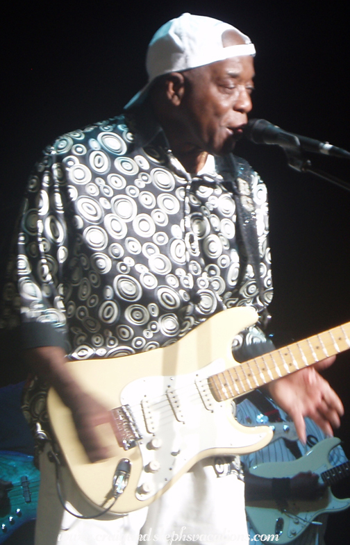 Tonight we saw Buddy Guy and George Thorogood at the Bank of America Pavilion in Boston. The last time we saw him was in 2004 when we brought our friend Frank to see him at the Casino Ballroom at Hampton Beach. Having been BB King's bus driver for 20 years, Frank knew Buddy Guy when Buddy was just starting out. The two had a wonderful reunion and Buddy was very sweet and gracious to both Frank and Craig and myself. When Frank passed away in 2005, we put together some little photo albums and distributed them to folks who were close to Frank. We wanted to give one to Buddy Guy, but didn't have a chance until last night. His guitarist Ric was quite friendly and delivered the photos backstage to Buddy Guy, for which we are very grateful. Buddy did a great set; he was in top form. He played selections from his new album "Skin Deep" (the title track is excellent!!) as well as old favorites such as "Hoochi Coochie Man." He brought local 9 year old New Bedford blues prodigy Quinn Sullivan onstage and they traded licks on "Who's Gonna Fill Those Shoes". Buddy walked through the crowd during "Drownin' on Dry Land", and finished up with a much shorter-than-usual segment of impersonations of other blues guitarists such as Eric Clapton (a falsetto "Strange Brew") and Stevie Ray Vaughan as he raced the clock before he needed to get off of the stage. The crowd was loving every minute of it. From the second row, I was able to get some surprisingly good photos. After a short break, George Thorogood and the Destroyers took the stage. They blasted through song after song, with special guests such as Barrence Whitfield on maracas and Elvin Bishop on guitar. "Fix Her"..."I Drink Alone"..."One Bourbon, One Scotch, and One Beer"..."Bad to the Bone"..."Move It On Over"...I couldn't stop dancing. By the end of the night, Thorogood comically collapsed on his stomach onstage while the Destroyers took bows, and then got up for one more number. They wrapped him in a bathrobe and he left the stage. |