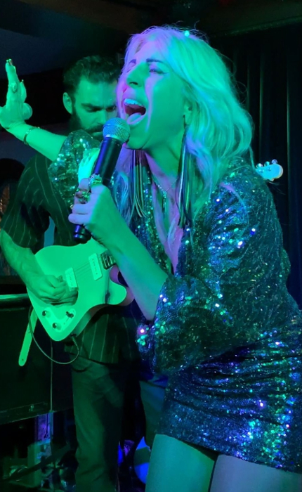 This show was a CD release party for her new EP "Sweet Or Mean". There was no opening act. Eliza took the stage in a silver sequined mini-dress and a faux-fur shrug. She looked amazingly fierce, though she quickly ditched the shrug due to the heat.