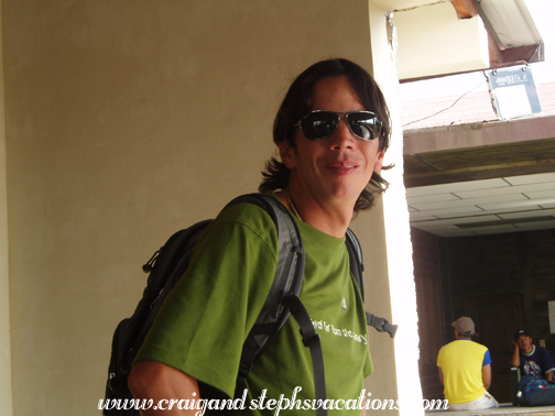 We landed in Baltra and Sebastian checked us in for our 11:00 flight. We said our goodbyes and waited to board. It was incredibly hot at the airport and we waited on a bench in a part that was open to the outdoors. At 10:55 they let us into the departure area, which was closed in and even hotter. We were lucky to find seats and it was absolutely sweltering. At around noon they let us board the flight. The guy next to me refused to put his seat upright. Even when the flight attendant asked him to do it he wouldn't, and made her do it instead. The plane was full of people who had taken sea-based Galapagos trips, and we heard stories of many of them having gotten sick. We arrived very weary in Quito at around 4:00 pm. Guillermo the driver met us and we were instantly back to civilization, which was a bit of culture shock. He brought us back to Hotel Eugenia. We were feeling quite lazy and watched TV for a few minutes. I didn't know if I had the energy to go out and we contemplated eating at the hotel. But we roused ourselves and decided to take a short walk to find someplace nearby to eat and perhaps have a drink. On our way down to the lobby, we looked at some of the souvenirs they had on display at the hotel, and decided to buy a small-scale Virgen of Quito statue as well as a few other trinkets. The very friendly and helpful hotel proprietors had me inspect the items and then they wrapped them very carefully in newspaper and gave us a cardboard box in which to carry them. We ran them back up to the room and then headed out on the town. We walked around Mariscal and most places were deserted. I think we were out before most places opened, or maybe it was that it was a Sunday night. We found a brick oven pizza place open, but we didn't really feel like that. Craig wanted to go toward Mama Clorinda and check out the happening restaurant next door: La Boca del Lobo. This was a great idea, and we went inside. The place was an old house which had been turned ultra-modern. Glass walls had been added to create a porch overlooking the street, and the decor was extremely funky. Red and blue lights hung inside of bird cages suspended from the ceiling. Oversized portaits hung in huge gilded frames and it looked like something from Alice in Wonderland. It was hip and trendy, yet comfortable and inviting. We got a seat overlooking the street which made for fun people watching. Bagels made of glass hung from one wall, and mosaics of mirror and metal hung behind us. There were propane heaters on the glassed-in porch, as the glass walls stopped several inches from the ceiling. The waitress brought us menus that had metal covers and were about 3 inches thick. They had photographs of the food and were in English as well as Spanish. Everything looked so good! As a drink I got a "vainilla sunrise" (Absolut vainilla. grenadine, and orange juice) and it tasted delicious! After poring over the menu several times through, we decided on an appetizer and meals. For an appetizer, we got chicken brochettes which were mini skewers of chicken wrapped in bacon served with warm french bread and dijon mustard. They were delicious and very artfully presented. For my meal, I got the "ferocious chicken" breast with cream cheese, chives, ham, white wine, and tarragon with french fries. Craig got the Dutch mini filet mignon wrapped in bacon with red wine and mushroom sauce and Dutch potato with ricotta and herbs. It was decadent. We felt that this was one of the best meals we had ever had. We could see Anthony Bourdain coming here as he eats his way across Ecuador. They must have a very talented chef here. The place was packed with people, so it obviously had a great reputation. Although it was a large restaurant, it was in an old building, so everyone sat in small rooms and it felt intimate while still seating a lot of people. Some rooms had regular tables and some had couches. We really wanted dessert but were quite full so we decided to share orange crepes with vanilla ice cream. It was so good! At around 9:30, we walked to Magic Bean to get some pastries for tomorrow morning. The place was pretty dead and we caught the bakery clerk dancing to a Green Day song on the radio. His friend started cracking up and we said we wouldn't tell anyone. We bought apple blackberry muffins with buttercream frosting for the morning. We saw a lot of police around, and signs warning would-be thieves, drug dealers, and prostitutes that there were surveillance cameras in place. Indeed, we noticed a camera on the top of a telephone pole, panning across the streets. An insincere-sounding guy from California tried to beg for money from us. He claimed that he had been robbed, but other tourists told him he had approached them with the same story once before in a different city. It seemed like he was the type of person who was begging from tourists as a way to sustain his own vagabond lifestyle. If we were to give any money to beggars in this city, it certainly wouldn't be to this guy! The streets were pretty deserted, and we felt a bit paranoid as we walked back to the hotel. We packed our bags, and went to sleep. |