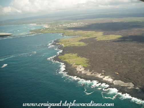 We woke up at 6 am and got our things packed for the flight back to "the continent." We met Sebastian at 7:30 for a breakfast of juice, scrambled eggs, and coffee, and got a ride to the airport at 8:15. We checked into the tiny airport and sat with a few other passengers while they prepared the plane. We watched as they siphoned off gas by mouth from the "tip tanks" of the plane, as the luggage was too heavy. The whole time we had been sitting there, we had been staring at a sign which warned to "Drain tip tanks last." Hmmm...we hoped they knew what they were doing! We were very crammed into the plane once again, but had gorgeous views out the windows.