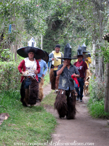 Inti Raymi dancers stop at the house for food and drink on their way to Cotacachi Inti Raymi dancers stop at the house for food and drink on their way to Cotacachi Craig drinks with the Inti Raymi dancers Inti Raymi dancers arrive in Cotacachi Sisa and Natalie Spectators at La Plaza de la Matriz Antonio prepares to dance San Juanito dances begin Craig and Antonio dance with the men from Morochos Iglesia de la Matriz Antonio and Craig See more photos from this day |