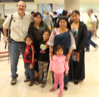 Saturday, 4/23/2016 - ArrivalFor this trip to visit our Godchildren in Ecuador, we were glad that we had found a flight that didn't leave at the crack of dawn. We could get up at a reasonable time, and left the house at 9:40 a.m. Craig's brother Steve drove us to the airport.Once we had checked in and gone through security, we went into a gift shop and bought some Boston Baked Beans candy and chocolate covered cranberries as a local gift for the family. For lunch, we got turkey, cheese, and cranberry sandwiches at UGrill. The airport was pretty dead at this time of day. Our flight was at 12:45 p.m. on American. No food was served on the flight aside from pretzels. We arrived in Dallas 45 minutes early. I was hungry for dinner, so I got a Thai chicken wrap and Miss Vickie's jalapeño chips at Au Bon Pain. Craig was still full from lunch, so he didn't get anything. Our connecting flight left at 5:55 p.m., and it was 5 hrs 15 minutes long. We landed in Quito at 11:36 p.m. Somehow, we managed to be the first ones through immigration, and we picked up our luggage. We had checked two bags, plus a Rubbermaid tote full of supplies to leave in our casita. It is always so nice that the whole family comes to the airport to pick us up, no matter the time. Antonio, Rosa, Aida, Sisa, Yupanqui, Shina Tayanta, and even Rosa's niece Celestina were here to greet us. The kids met us with big hugs. They had been waiting all day for us and we were all excited to be reunited. Sisa gave us bottled water and Shina gave us Jet chocolate bars. Shina's eyes look great! When we last saw her 6 months ago, she had just undergone surgery to correct her strabismus (crossed eyes). She looks fantastic now, and it is obvious that she is having a much easier time seeing things now that her eyes are straight! Unfortunately, the one group photo that I took of everyone at the airport turned out blurry: We arrived at the house at 2:30 a.m. We were greeted by Max the dog and the new little puppy, Peluchin. We said goodnight to the family and got settled into our casita. We had left some things in Rubbermaid totes last time we were here, and we got out what we needed for the night as quickly as we could. We were absolutely exhausted. We were in bed within 15 minutes. |