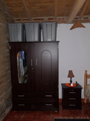 Saturday, 4/30/2016 - Furniture ShoppingSince I didn't have to work today, we were able to sleep in, not waking up until 9 o'clock. We ate breakfast with the entire family. We had omelets, coffee, juice, bread, bologna, and fresh homemade plantain chips. They always take such good care of us!I like to do activities with the kids whenever possible, and I had brought supplies for an art project. The early childhood educator in me made an appearance as we made owls out of paper plates, foam pieces, and googly eyes. The kids were very engaged and made two owls each. I also had time today to help Rosa with some chores, so I swept the kitchen. Then one of Antonio's bands came over to practice. This was more merengue-esque dance music, as opposed to the traditional Andean music of Chasqui Ñan. This band was primarily made up of young men whom Antonio is mentoring. Antonio has had problems with his back lately, so he has had to let up on physical labor and has thus been able to focus more on his music. Aida even sang with the band. It was great to have a private concert. For lunch we had soup, cheese, mote, and salad. After lunch, we took a bus to Quiroga and then changed buses to go to Otavalo to buy some furniture ("muebles" in Spanish) for the casita. We have been living out of duffel bags and Rubbermaid containers, and decided that it was time to buy a wardrobe/chest of drawers so that we can actually spread out and unpack. Antonio, Rosa, Sisa, and Yupanqui went with us. Across from the Otavalo bus station, there was a billboard for an Alpha Blondy concert back in February. I backtracked on foot to get a photo for my European Facebook friend Alice Fenenga, who is a big fan and curates an online digital collection of photos of this reggae artist. There are many furniture shops on the same street in Otavalo. We browsed in a few to find a wardrobe that will fit well in the casita. We decided on one with two doors, two drawers, and a mirror, made of pine stained brown with brushed nickel hardware. We decided to buy a matching 3 drawer nighstand as well. Both pieces came to a total of $190. We did some more shopping while we were in town (coat hangers, a small trash barrel, food, etc.), and sat enjoying Parque Bolivar for a while. The pirate Jack Sparrow even made an apearance, in a very impressive costume! We passed the offices of Vista para Todos, the wonderful organization that provided Shina Tayanta's strabismus surgery. As we were walking, we had to stop as we approached a man selling huevos chilenos, little fried dough balls with sugar on top. We could smell the scent of the fried dough, and at 50 cents per bag, we couldn't resist buying some. They were just as delicious as we had hoped. Then we went back to the furniture store to pick up our purchases. Antonio hired a pick up truck to bring them home. Both pieces, plus Antonio, Rosa, Sisa, and Yupanqui rode in the back. Craig and I rode in the cab with the driver. It was a very tight squeeze, and he was unable to go beyong 3rd gear because my leg was blocking the stick shift, LOL! We arrived home and set the new furniture up in the casita. It was so exciting! We hung up all of our shirts and jackets and filled up the drawers. And our 3 Rubbermaids even stack nicely on top of the wardrobe! It felt so nice to get organized. We have more space now and we don't need to dig through duffel bags every time we need a piece of clothing. It's feeling more and more like home. For dinner, we had soup, tuna, rice, broccoli, and plantains. We retired to our newly furnished casita and went to bed. |