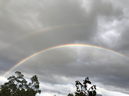 Saturday, 9/8/2018 - School shopping in OtavaloWe woke up on this fine Saturday morning to see a rainbow to the west. We enjoyed a family breakfast of fried eggs, bread, ham, green plantain hash, coffee, and juice.As Antonio and Rosa did the kids' hair at the outdoor sink, the kids were feeding bits of bread to the family chickens. The chickens were fighting over it, running around like crazy to try to procure a crumb. Today was market day in Otavalo, and we went with Antonio, Rosa, Sisa, and Shina to buy supplies for school. We waited for a ride at the bench across the street from the house. Yupanqui waited with us, playing soccer with Antonio and the girls. The ball would inevitably roll down the steep gorge behind us. Yupanqui somehow always managed to retrieve it before it disappeared for good. A camioneta (collective pickup truck) stopped to get us. We waved goodbye to Yupanqui, Cachupin, and Aida. The driver drove us straight to Otavalo and dropped us off. Our first stop was at a wholesale market behind Mercado Copacabana to buy sweaters. The school uniform in Morochos is the traditional Kichwa dress for both boys and girls. They may also wear sweaters or sweater vests of navy or green. Rosa knew just which vendor to visit at this local market, and had soon purchased the sweaters in the proper sizes. We cut through the picturesque Parque Simon Bolivar on our way to a stationery store. The store was packed with students and parents, who had been provided with lists from the schools of everything they needed to buy. Employees worked with each person to gather all of the items they needed. For three kids, Rosa needed three times the things: plastic book covers, pencils, colored pencils, tempera paints, pencil sharpeners, erasers, protractors, notebooks, binders, report covers...the shop was tiny and there wasn't enough room for everyone inside. Craig and I stood in the hallway of the building waiting. We took the girls into the store across the hall: World of Jeans. We had each girl pick out a T-shirt, and I found a long-sleeved denim shirt for Yupanqui. Rosa finally finished in the stationery store (after at least 30 minutes) and met us in World of Jeans. We had wanted to get pants for Yupanqui but hadn't known his size. So Rosa helped us to pick out a nice pair of jeans to fit him. Weighed down by 3 bags of school supplies, we went to a street market to buy traditional shoes for the kids. I bought some huevitos chilenos (fresh sugar-coated donut holes) from a vendor...one of my favorite Otavalan street foods. Costing only 50 cents for a paper bag of six, they are quite a bargain. The girls opted for plastic cups filled with colorful Jell-o. Next we went to the grocery store (Supermercado La Mia). Sisa and Shina were thrilled to push the grocery cart. Each st udent has to contribute certain hygeine tems to the school at the beginning of the school year, so we purchased toilet paper, hand gel, antibacterial soap, etc. We also bought some groceries for the house. For El Señor Chipikins, we bought a lidded plastic container to store his dry food. It was previously stored in a plastic yogurt bucket. Not only could he stick his face in the top and eat any time he wanted to, we also witnessed a neighbor dog enter the kitchen, put the bucket's handle in his mouth, and walk off with the whole thing! Craig and I chased the dog around the back of the property until he dropped it. This container will provide food security for Chipikins. We had way too many purchases to move efficiently in the crowds, so Craig, the girls, and I sat with all of the bags in front of the tourist information office while Rosa went to buy some vegetables. I took a walk and took some photos of street art. One monochromatic portrait reminded me of Patti Smith, if she were an Otavaleña. There were other colorful images. They seemed to especially celebrate women of all generations, and many were pictured reading books. It was a very nice, positive message. Other murals were more dark in tone, featuring gas masks, grotesque disembodied eyeballs, and masks. I really enjoyed admiring them. By the time we all reconvened, we had way too much stuff to handle on the multiple buses it would take to get us back home. So we got a taxi to take us and a trunk full of loot straight back to the house. Best $10 we've ever spent! When we arrived home, we had lunch of soup, beef, rice, fries, and cole slaw. The kids told us to close our eyes, and they presented us with lovely fleece jackets. We had gifts for them as well: a Caterpillar "Bobcat"-style loader and a Peppa Pig dollhouse. They were thrilled and immediately started playing. Last night Shina had been watching videos of kids playing with toys (including a toy refrigerator and all of its accessories) so I knew that she would like it. The house contained furniture and appliances, with little dolls of Peppa, George, and Suzy Sheep. I had wondered if Sisa was too old for the doll house, but she was overjoyed. Despite her maturity, she still enjoys the same things other 10 year old girls enjoy. Craig looked up and saw a bright rainbow to the east. I ran up to the third floor to get a better view for a photo. I saw that the arc touched the ground on both ends (that means it is a masculine rainbow, according to Kichwa belief). It was very bright, and as we observed it Craig noticed that it was a double rainbow, with a more faint rainbow above it. It was probably the largest rainbow either of us have ever seen. It was very cool to both start and end the day with rainbows. Craig and I decided to take a walk around the back of our house to survey the damage. We walked to the southern edge of the property, where there is a steep drop-off to the ravine below. We could see newly scorched earth; the flames had made their way up the walls of the ravine and had singed some agave plants and burned some grass at the back of our fields. Disaster was averted, but it left us with an unsettled feel