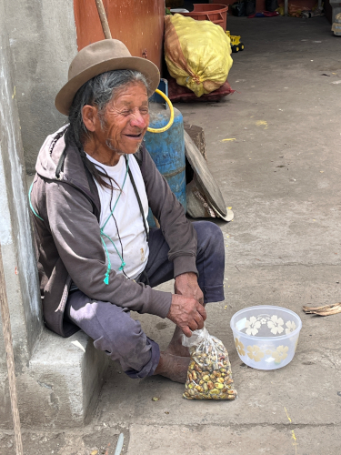 Tuesday, August 26, 2025 - Working RemotelyI didn't have a meeting at breakfast time this morning, so I was able to eat with the family. We had crepes filled with fresh strawberry jam, ham and cheese sandwiches, coffee, and yogurt. Jaime was around today, and so was Antonio's uncle Juan Pedro. Juan Pedro always gets very excited when he sees us, and greets us with a big smile and a handshake. He likes to help out around the house with planting, etc. Today he was shucking beans.I worked upstairs while Sisa's two cats snoozed on the bed. I got to eat lunch with the family, too. We had soup, chicken, tomatoes, rice, and potatoes. One of Sisa's cats was laying down with Abuelita's Virgin Mary statue on top of the refrigerator. This was our first visit since Abuelita passed away on Christmas Eve last year. Her presence is greatly missed. Even though she spoke solely Kichwa and we couldn't really verbally communicate with her, her smile was infectious and we got along very well. Juan Pedro was her brother-in-law, and they were very close. Juan Pedro is mute and relies on others to care for him, so we were glad to see him today. We had wondered how he was faring now that Abuelita has passed. The puppy (Oreo) wasn't around until 4 o'clock, at which point he came right into the house and the kids started playing with him. There are several windows that are either missing, broken, or drafty in the main house, and there is a missing small window in the bathroom of our casita. Especially in Sisa and Shina's room, it becomes a wind tunnel and is very chilly. We told Antonio that we wanted to pay to get the windows fixed once and for all. He went to Quiroga after work to hire a maestro to come and measure the windows. The maestro is supposed to come first thing tomorrow morning. "First thing" around here is generally as soon as the sun comes up, so we would be waking up even earlier than usual, as he may need to get into our casita to take measurements. Dinner consisted of soup, steak, fries, rice, salad, and beans. We had a serious chat with Antonio about the hardships that the family faces, and that they are grateful for our help. After our discussion and after the dinner dishes were washed, we all retired to our rooms for the night. |
