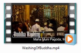 Friday 11/4/2016 - Mandalay: 4 a.m. Buddha washing at Maha Muni Pagoda, Trishaw ride, Shwenandaw Kyuang, Mahagandayon Monastery, Uminthonezel, Ponnyashin Pagoda, Shwe Sin Tai Silkwear, Sunset at U Bein BridgeWe woke up at 3 a.m. after a fitful sleep. We always seem to sleep restlessly when we know that we are only getting a few hours of sleep. Maybe it is fear of oversleeping an early alarm. We quickly got dressed and met the group (minus Al, who opted to sleep in) in the lobby at 3:30.Our bus picked us up and we drove for 10 minutes to Maha Muni Pagoda for the daily ritual washing of an historically significant gilded Buddha image. This Buddha statue is said to be one of only 5 likenesses of Buddha thought to have been created within his lifetime. The story goes that Gautama Buddha visited the kingdom of Arakan (present day Mrauk U in Rahkine State). The king, King Sanda Thuriya, wanted him to leave behind an image of himself when he returned to India, so the Buddha sat for a week under a Bodhi tree while an image was moulded. The image was cast in bronze, and the resulting statue weighs 7 tons. The Buddha is said to have consecrated it with his own life force. In the 11th century, King Anawratha tried to move the statue from Arakan to Bagan, but he was unsuccessful. However, in 1784 Crown Prince Thado Minsaw conquered Arakan, and brought the statue to Mandalay as a war trophy. It was too large and heavy to transport as a whole, so it was cut into sections and then reassembled inside the pagoda. After the statue had resided for more than 200 years in Mandalay, in 1988 the monks of Maha Muni Pagoda commenced a daily ritual washing of the Buddha's face at dawn. We arrived at pagoda at around 3:45 a.m. It was still dark outside, and the place seemed deserted except for two people selling offerings at a table right outside the entrance. We bought strings of jasmine flowers from them and entered the building. The corridor in front of us was gated shut and locked. We posed for photos, since we were both wearing our longyis. The jasmine flowers smelled beautiful. All of a sudden, a majestic moth emerged towards us through the gate. It was surreal. Soon an attendant arrived and unlocked the gate. We walked down a long corridor. There were vendor stalls lining the perimeter, but they were all closed at this early hour. We arrived at the sanctum sanctorum, a gilded chamber. There were two sets of large locked gates behind which was the giant gilded Buddha image. People were gathering and sitting on the floor facing the gates. Men and women sat separately, with the men in the front section. Craig and I had brought two cameras, so Craig had his own and we were both able to photograph the proceedings from our separate vantagepoints. (In a very strange coincidence, we each took exactly 195 photos of the event. How does that happen?) We placed our jasmine flowers onto a silver tray as an offering. Other people brought flowers, food, and bottles of water. A procession consisting of monks in burgundy or saffron robes and temple attendants dressed in white approached the locked gate. Another majestic moth (or maybe the same one) flew toward us from behind the gates. It seemed spiritual, and brought to mind theories of reincarnation. A man seemed to try a few keys before he found the proper one that unlocked the outer gate. He then unlocked the inner gate, and for the first time we had an unobstructed view of the awe-inspiring Buddha. Monks filed toward the sanctum sanctorum, arms full of offerings. They handed them off to the temple attendantsm who arranged them carefully in front of the statue. Attendants polished the handrails of the steps which the head monk used to ascend the statue. They placed a wooden board for the monk to stand on, and he draped the body of the statue in multiple layers of saffron silk to keep it dry and clean while he washed the face. The monk took a small spray bottle and spritzed the statue. He then brushed the "teeth" (lips) of the statue. People in the audience started to chant, and there was mesmerizing musical accompaniment. Next, he slowly and deliberately applied a sandalwood-based polish (similar to thanaka) to the golden face. The care which was taken was phenomenal, like he was taking care of a child. People had brought cloths, and he cycled through various ones to wipe off the water and sandalwood paste, and buff the face. The cloths were then returned to their donors as a blessing. Once this process was complete, he fanned the face with two separate hand fans. It was absolutely gleaming. Next it was time for some restoration. The monk applied black lacquer to the Buddha's forehead and then added squares of gold leaf to the brow in a careful annd deliberate manner. Some of the offerings in the women's section were distributed amongst the women by the temple attendant. A man gave Genean and I each a sealed bottle of water that people had brought as offerings. We weren't sure whether there was something ritualistic that we were supposed to do with it. Genean asked a Burmese woman next to her, who looked at us kind of funny, and said, "It's water." It turned out that this water was blessed, and drinking it would bring us good karma. They also handed out some blessed jasmine flowers, and a local woman shared hers with Genean. A small plastic cup of what looked like milk tea was passed around. Everyone dipped a finger in it and then applied it to their hair. Genean and I did the same. We are not sure of the significance, but we wanted to partake in the ritual. When the monk was through restoring the head, it was time to work on the body. The protective saffron cloth was removed from the statue. He applied lacquer with a cloth over a huge area, which he would then painstakingly apply with gold leaf. By now, we had been there for 75 minutes, and Zaw suggested that it was a good time to take our leave. I admired that Craig was seated up front cross-legged for that entire tim
