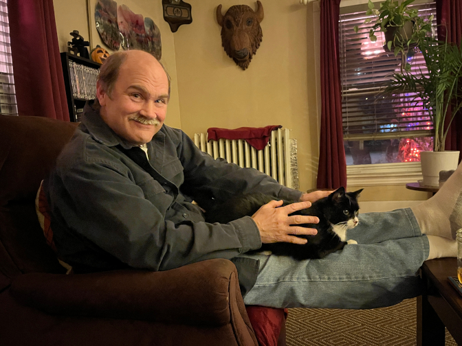 Friday 10/17/2025 - ArrivalI took the day off today and we drove out to Utica, NY to visit Tyson. We left the house at noon. We listened to the audiobook of Rick Wakeman's "Grumpy Old Rock Star" on the ride. It was quite an amusing book, with the same type of humor and anecdotes that punctuate his live shows. Rick himself narrates the audiobook, and it was quite an enjoyable way to spend the 300 mile drive.The GPS predicted that we should have made it to Tyson's house at around 4:20 p.m., but we spaced out and missed the exit. This caused us to go about 20 minutes out of the way. When we arrived, at around 4:45, Spooky the cat greeted us. We were immediately stricken by the absence of Roxy the boxer, who passed away since our visit last year. Tyson poured himself a scotch and offered some to Craig. Craig is not usually a scotch drinker, but Tyson had let him try some John Barr on a previous visit, and Craig actually liked it. Craig accepted and actually got a little buzzed from it. He usually drinks beer and it doesn't affect him, but he felt that he had driven 300 miles today and wasn't driving to dinner, so he indulged. I had some hard cider that I had brought. We chatted and then decided to go to the Taj Mahal Indian restaurant in nearby New Hartford for dinner. They gave us an order of pakora on the house as an appetizer. Craig's speech was a bit slurry after the scotch, and we were gently teasing him. It was probably for the best that this restaurant didn't have a liquor license. Craig and Tyson had lamb vindaloo, and I had paneer tikka masala. Craig and I both asked for our dishes to be spicy, and they delivered. I had a mango lassi, and we shared an order of garlic cheese naan. We went back to the house and chatted and listened to records (Pulp, Sparks, Halloween songs, etc.) Tyson has ammassed quite an LP collection, and it felt like the old days, having to get up every twenty minutes to change sides. Saturday 10/18/2025 - Michael T'sSpooky opened the door to our room in the early morning hours on her daily walkabout. I picked her up and put her on the bed where she laid with us for a few minutes before moving on.At 5:30, we went to Michael T's restaurant in New Hartford, Tyson's ex David's family restaurant. Tyson and David are still on good terms and we wanted to see him, so we sat at the bar where he was bartending. Craig had an IPA, I had a Moscow mule, and Tyson had a Jameson's. We thought it best for Craig not to have more scotch in public. Italian restaurants can be difficult for Craig because he gets a reaction to olive oil. Partly because of this, and partly because he loves a good prime rib, he usually gets the delicious prime rib special, which is a generous portion at a reasonable price. Tyson ordered the prime rib as well. I ordered my usual, the veal Trunfio, a specialty of the house which I absolutely love: a veal cutlet smothered in cheese, olive oil, and peppers. We had some garlic bread while waiting for our orders. Although it ws cooked in olive oil, Craig couldn't resist having a piece. Craig's prime rib was served with fries, and my veal had ziti in marinara sauce as a side. It was nice to see David and chat with him about his recent trip to Ireland and his purchase of a new house. And of course the food was delicious, as always! After that, we went back to the house. We watched "Scott Walker: 30 Century Man", which was quite interesting. We hadn't really heard of Scott Walker previously. Sunday 10/19/2024 - Calvin and Hobbes at the FenimoreWe had coffee and Tyson made us breakfast sandwiches. Tyson's friend Dave came over at around 11:30. We had never met Dave before, but he was really friendly and funny, and soon it seemed like we had been friends forever. We went to the garden and harvested some peppers (jalapeños and long hots) to take home, and Tyson also gave us some fresh catnip to bring home to Inca and Maya. It had been a big success in prior years.Then we hit the road to go to the Fenimore Art Museum in Cooperstown. We had been there four times before, for a Herb Ritts exhibit, a Keith Haring exhibit, an M.C. Escher exhibit, and a Bob Dylan exhibit. It is a great little museum. This summer they hadn't really had an exhibit that interested us, but they had announced a Calvin and Hobbes exhibit for the fall! Craig is a huge Calvin and Hobbes fan from back in the day (it ran from 1985-1995, fully encompassing his college years), so we timed our visit this year to coincide with the exhibit. The exhibit was not downstairs where the temporary pop culture exhibits have been in the past; it was smaller, so it was upstairs. The exhibit charted Calvin and Hobbes from its inception (when Calvin was named Marvin, and had hair covering his eyes) through to the last strip. Creator Bill Watterson had been told that a comic strip in which you can't see the protagonist's eyes would not fly, so he changed Calvin's look to be what we know today. They had some art which was rendered in watercolor which was really eye-catching. They even had an anti-tyranny strip, which was quite timely for yesterday's No Kings Day! Craig was wearing his vintage T-shirt from back in the day that depicted Calvin and Hobbes jamming to the record player, and I got a photo of him standing in front of a strip of the two characters dancing. We went into the gift shop with every intention of buying some merch, but all they were selling were the books. Craig has the complete collection (thanks to our friend Gary), so we didn't end up buying anything. Watterson has always been against the commercialization and commoditization of his work, so I guess this is not too surprising. This made Craig realize how special and rare his official vintage shirt is. We contemplated getting lunch at the cafe at the Fenimore, but they didn't have their usual paninis (the menu consisted mostly of chicken and tuna salad types of sandwiches, and Tyson hates mayonnaise). We considered going to a restaurant, but Tys